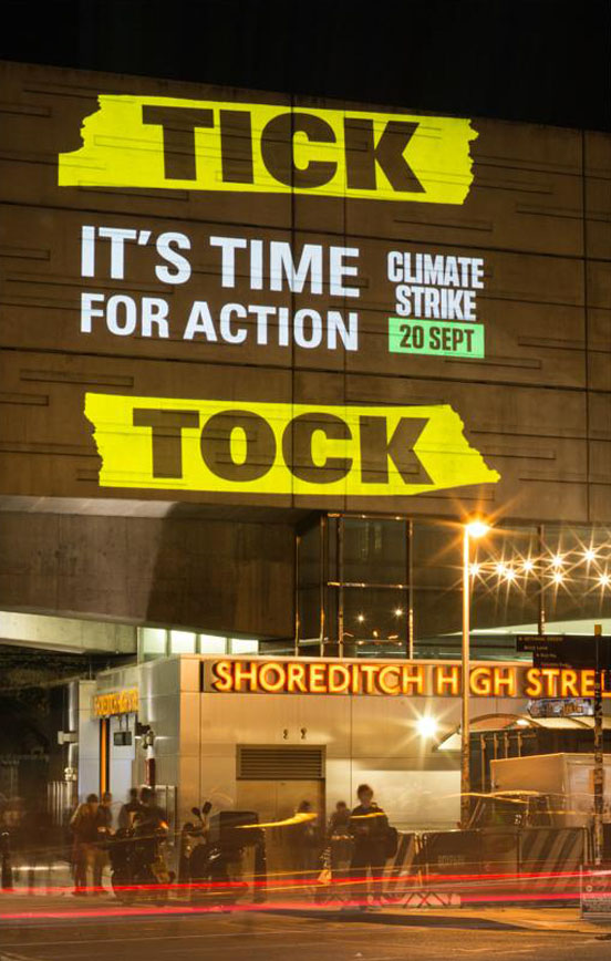 The project was made in partnership with Greenpeace to draw attention to climate crises and encouraged the public to walk out of their schools, jobs, or wherever they may be and ask for government action.